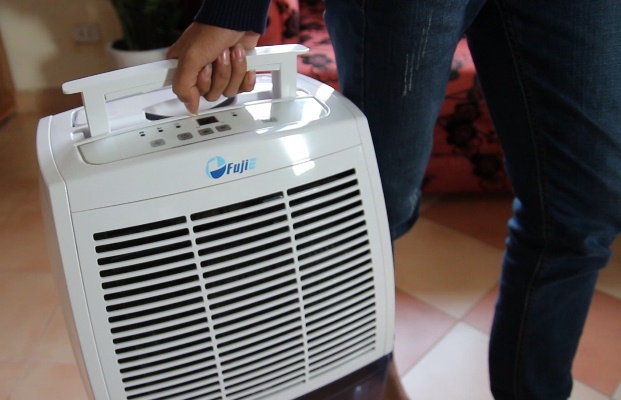 Máy hút ẩm dân dụng FujiE HM-620EB thiết kế có tay cầm, có trọng lượng 13kg khá nhẹ