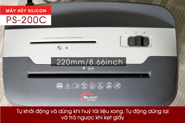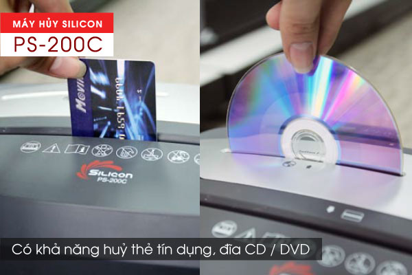 – Máy hủy tài liệu Silicon PS-200C được thiết kế đa năng, với nhiều chức năng. Ngoài công dụng chính dùng để hủy tài liệu hủy giấy thì máy có thêm chức năng hủy đĩa CD / DVD... rất tiện dụng.