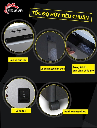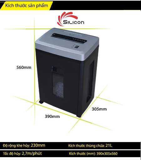 Máy hủy tài liệu Silicon là dòng sản phẩm cấp cao, mẫu mã trang nhã, có thiết kế miệng cắt rộng, tự động khởi động và tắt máy sau khi hủy tài liệu xong.