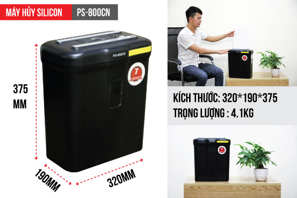 - Máy hủy tài liệu Silicon PS-800CN được thiết kế linh hoạt, tính thẩm mỹ cao, độ ồn thấp, khi sử dụng máy không ảnh hưởng đến năng suất làm việc của con người.