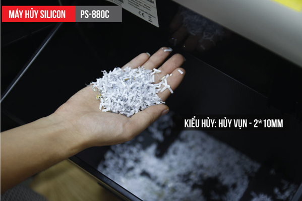 – Được sản xuất bởi thương hiệu Silicon nổi tiếng với dây chuyền công nghệ đạt tiêu chuẩn quốc tế, máy hủy tài liệu Silicon PS-880C là 1 trong những loại máy hủy tài liệu được nhiều người tin dùng