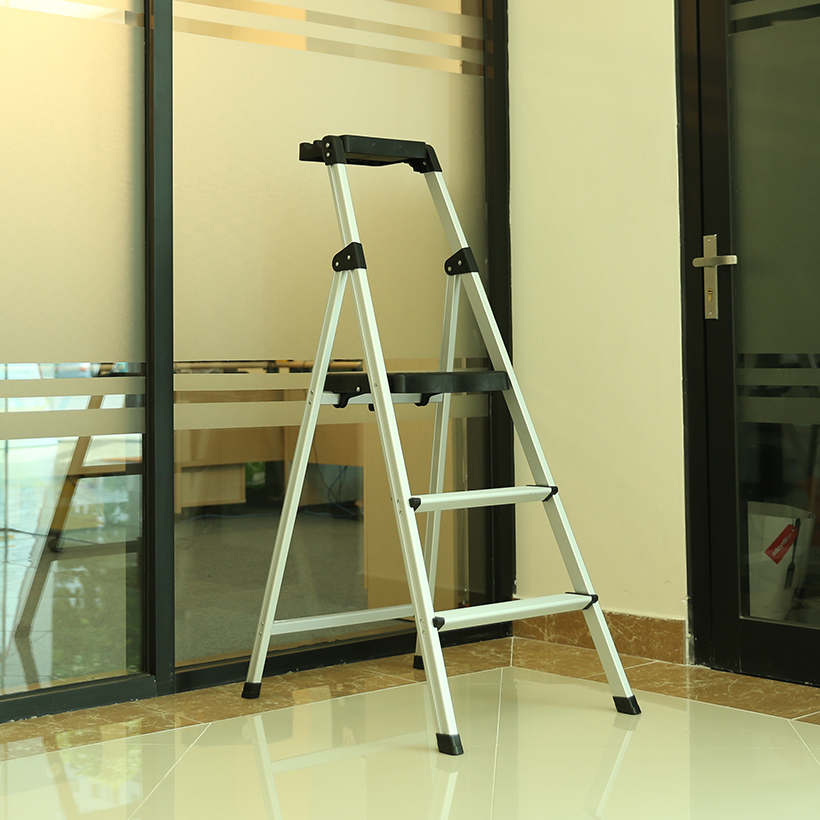 Khoảng cách giữa hai chân thang có kích thước rộng, có thể đứng vững chắc mà không cần người giữ. Chân thang bằng cao su thiên nhiên chống trơn trượt chống trượt giúp chân thang bám vào mặt đất dễ dàng hơn cũng như bảo vệ sàn nhà chống trầy xước khi tiếp xúc với kim loại.